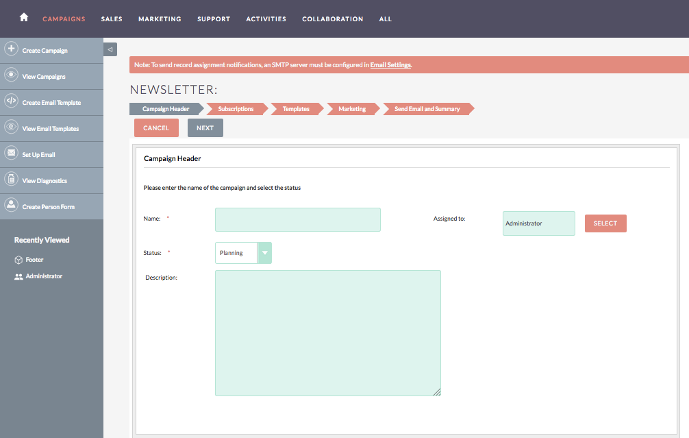 Create lists of prospective or existing customers, and nurture them with newsletters, emails, and non-emails campaigns. Use the powerful newsletter editor to create stunning emails, and monitor results of campaign in real time.